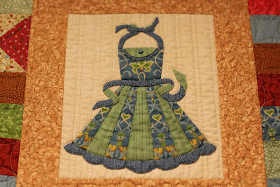 Isn't this fabric from Riley Blake so cute! Love it! The dress form in the middle was machine embroidered, but check out that window oval, so cool, and a new learned technique. Now, I have no excuses but to keep working on my quilt.